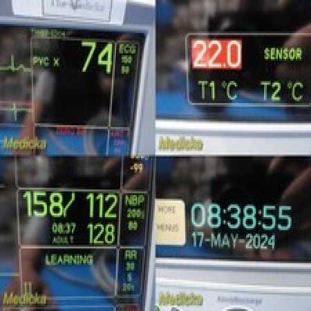 - Monitor parameters: Blood Pressure - NIBP, CO2, Cardiac Output, ECG, O2 - SpO2, Temperature